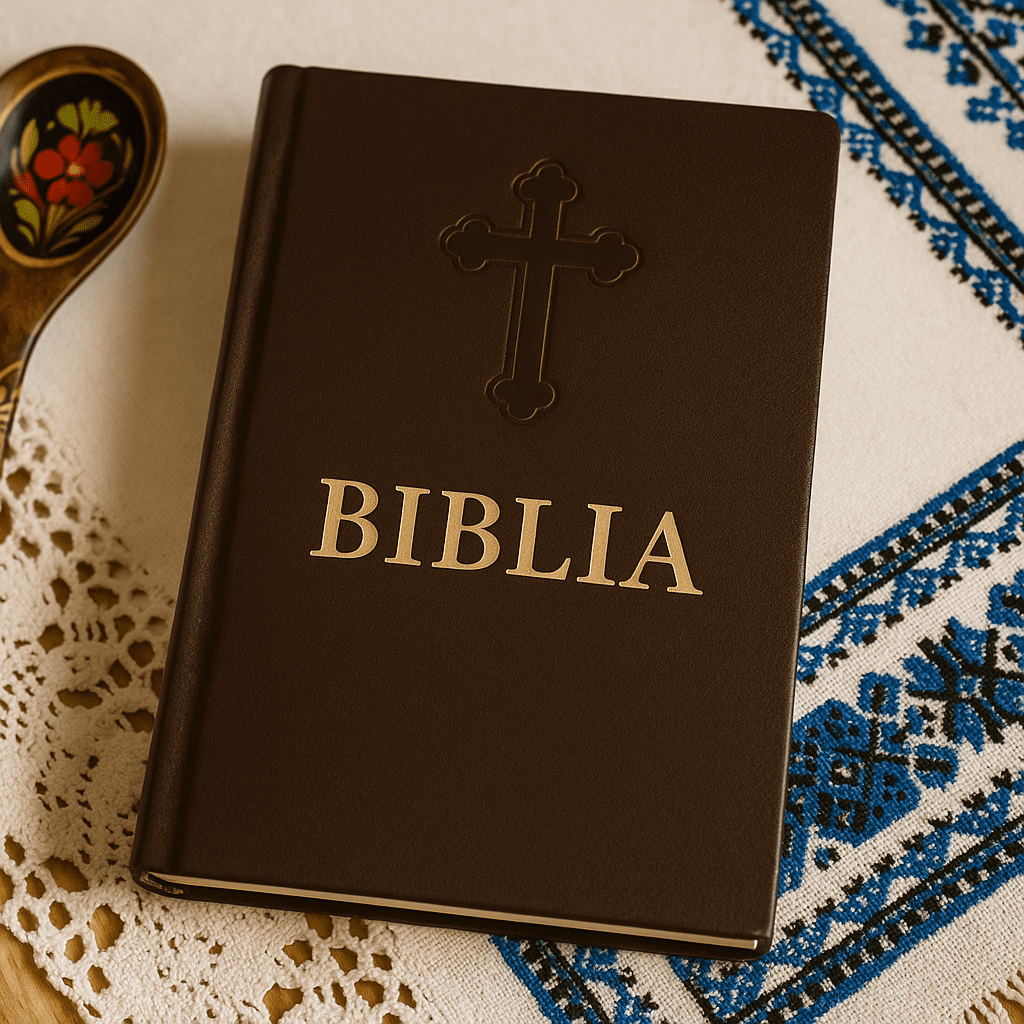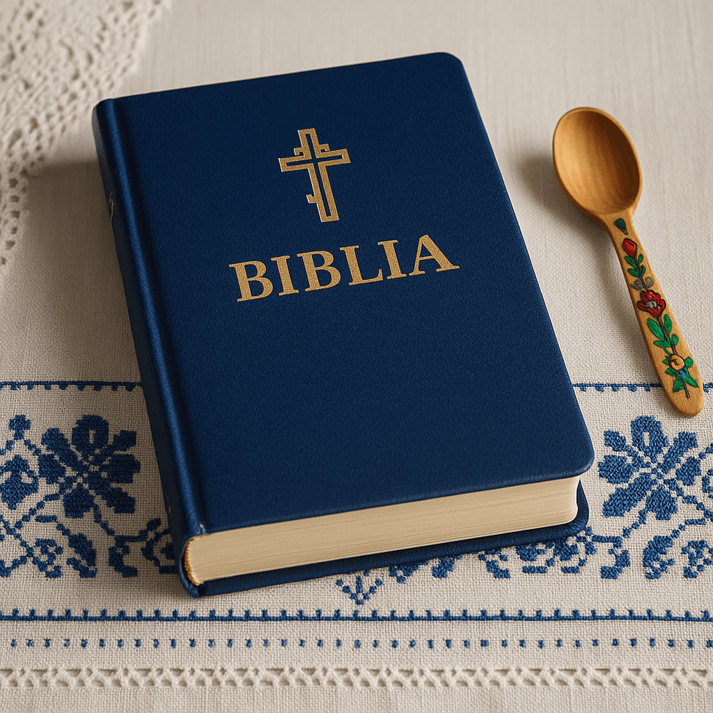 Nu trebuie să fii în biserică pentru a simți prezența credinței. Uneori, e suficient să vezi Biblia pe masă, lângă o cană de ceramică sau o față de masă cusută cu motive albastre. În diaspora, tocmai aceste lucruri mici – un obiect, o imagine, o filă de rugăciune – refac legătura invizibilă cu România profundă. Biblia Ortodoxă Simplă nu e o simplă carte – e semnul că în casa ta trăiește mai mult decât prezentul: trăiește tradiția.