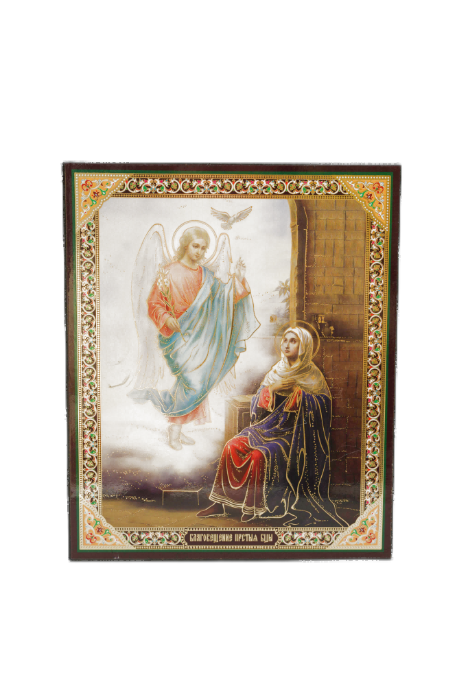 Icono consagrado de la Anunciación - 14×19 cm, modelo 2, símbolo de la gracia y la bendición divinas.