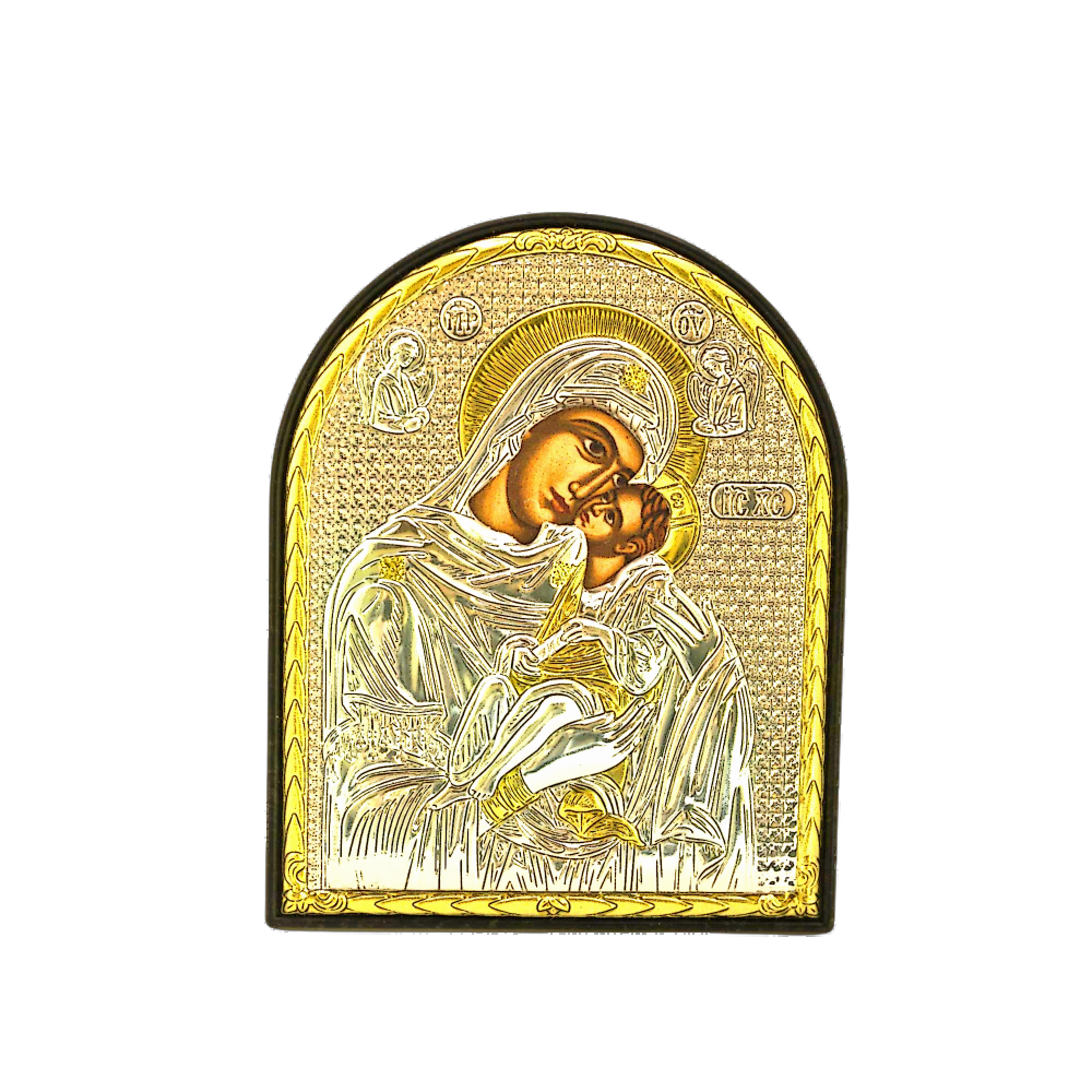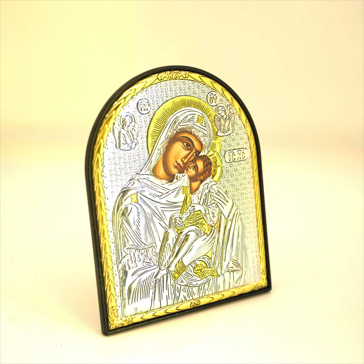 Icoana Argintată – Maica Domnului Dulcea Sărutare, 9×11 cm este o reprezentare plină de tandrețe și lumină a Maicii Domnului împreună cu Pruncul Iisus. Finisajul argintat oferă un aspect elegant și rafinat, iar dimensiunea compactă permite așezarea icoanei în orice spațiu al casei.