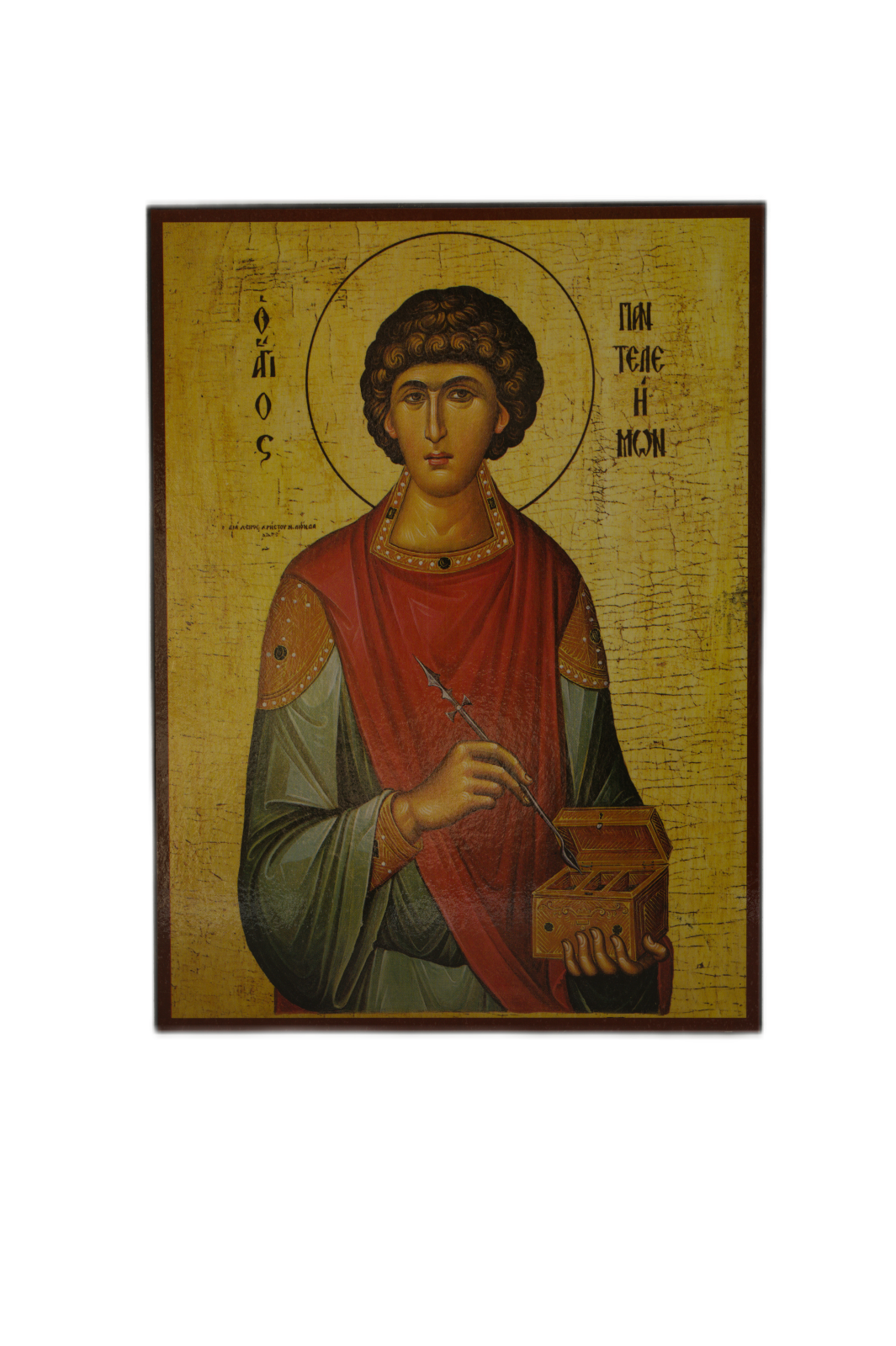 Icoană pe Lemn – Sfântul Pantelimon, 20×24 cm, Mare Vindecător, Sfințită