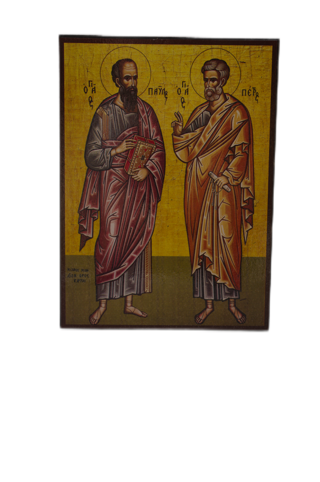 Icoană Sfinții Apostoli Petru și Pavel este o icoană ortodoxă lucrată pe lemn, imprimată în stil bizantin cu detalii curate și sfințită înainte de expediere. O icoană încărcată de liniște, har și protecție.