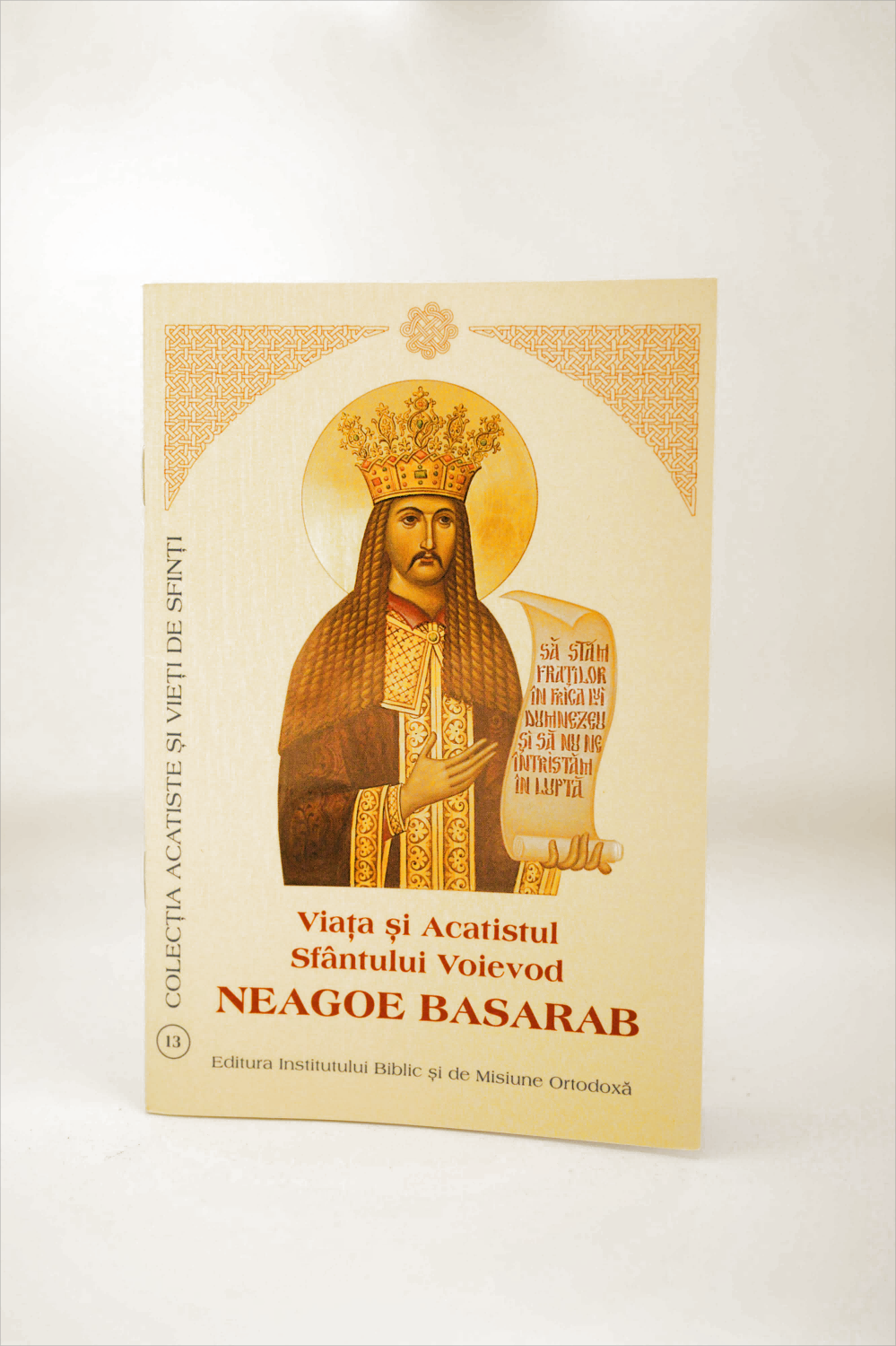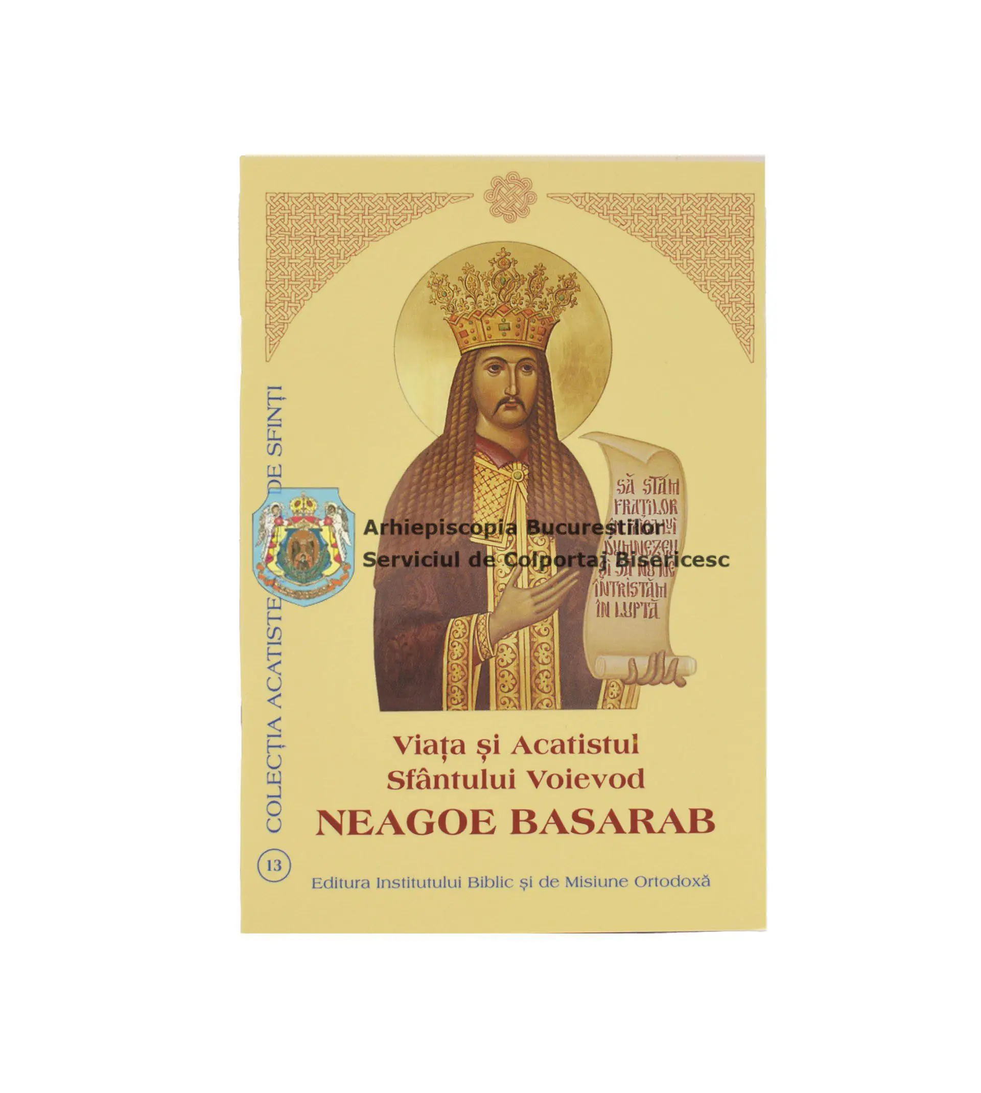 Această broșură conține Viața și Acatistul Sfântului Voievod Neagoe Basarab, domn al Țării Românești în perioada 1512–1521, canonizat de Biserica Ortodoxă Română pentru viața sa pilduitoare, evlavia profundă și dragostea față de Biserică. Este una dintre figurile emblematice ale istoriei românești, un voievod cărturar, ctitor și conducător înțelept.